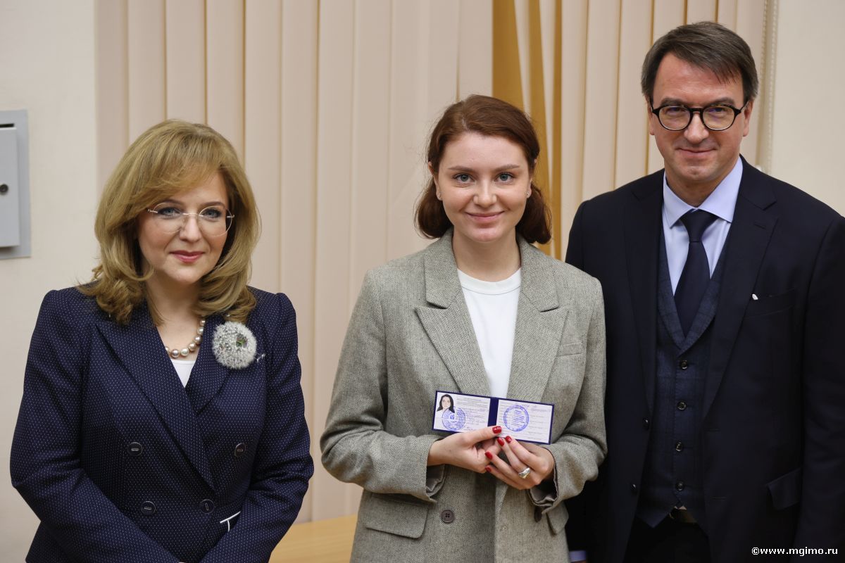 Директор ЕУИ поздравила собравшихся с успешным прохождением вступительных испытаний и поступлением в магистратуру ЕУИ. Тамара Викторовна выразила надежду, что время учебы в МГИМО будет важным знаковым этапом в жизни студентов, которые стали полноправными членами мгимовской семьи.